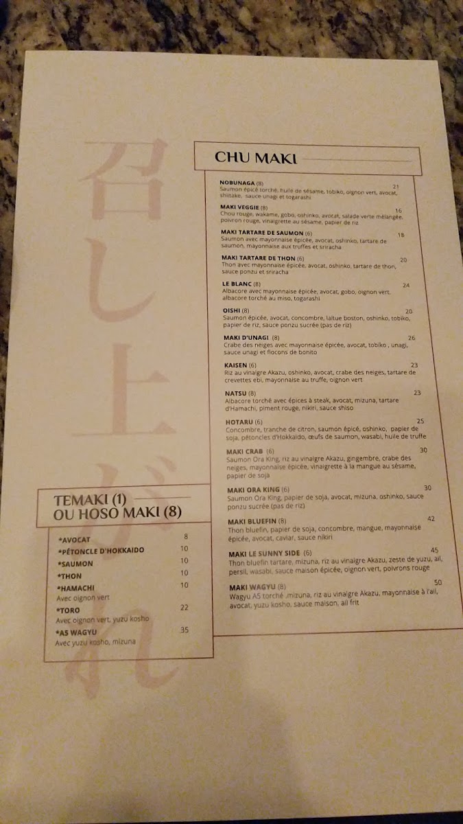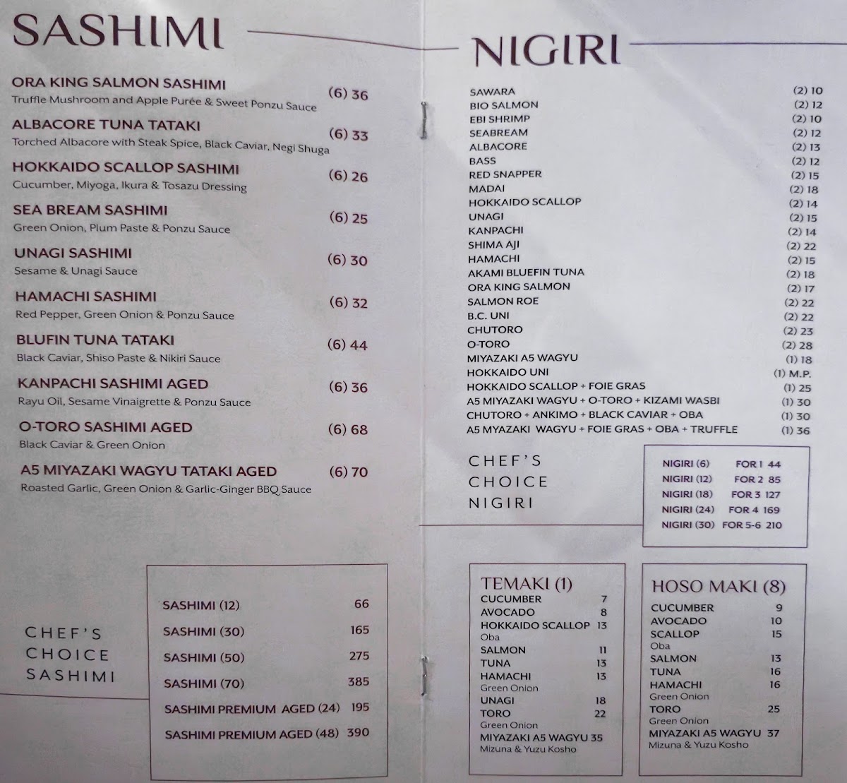 The star of the show is undoubtedly the selection of Hosomaki and Chu Maki. Highlights include the Hamachi with Green Onion for CA$16 and the stunning Maki Nobunaga, featuring torched spicy salmon and rich flavors for CA$33. Not to be missed is the incredible Sashimi selection, especially the exquisite OToro Sashimi Aged adorned with black caviar for CA$70, showcasing the ultimate freshness and quality.